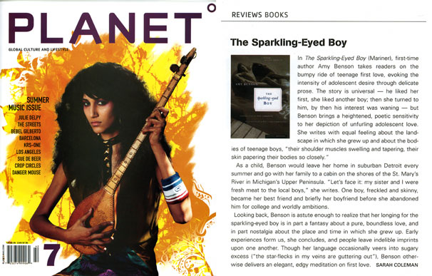 In The Sparkling-Eyed Boy (Mariner), first-time quthor Amy Benson takes readers on the bumpy ride of teenage first love, evoking the intensity of adolescent desire through delicate prose. The story is universal -- he liked her first, she liked another boy; then she turned to him, by then his interest was waning -- but Benson brings a heightened, poetic sensitivity to her depiction of unfurling adolescent love. She writes with equal feeling about the landscape in which she grew up and about the bodies of teenage boys, "their shoulder muscles swelling and tapering, their skin papering their bodies so closely."